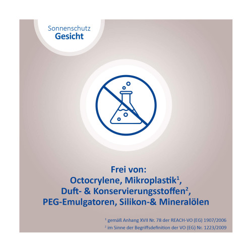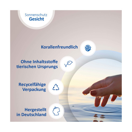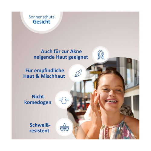 Tragen Sie die Sonnenschutz-Creme großzügig auf das Gesicht, den Hals, das Dekolleté und die Hände auf. Vor dem Auftrag von Make-Up oder anderen Gesichtsprodukten gut einziehen lassen. Cremen Sie nach Bedarf nach – vor allem nach dem Baden oder Schwitzen. Zu wenig Sonnenschutzmittel verringert den Lichtschutzfaktor.