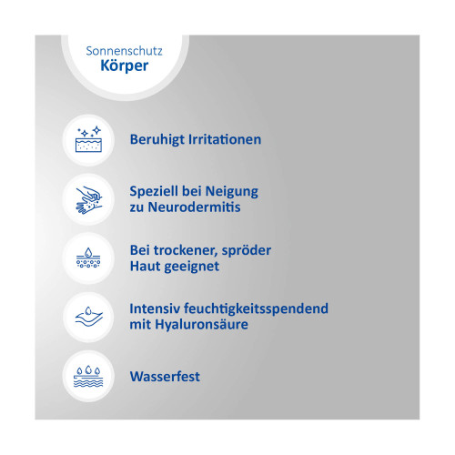 Ganzjähriger Sonnenschutz ist essenziell, da er nicht nur vor Sonnenbrand und sonnenbedingter Hautalterung schützt, sondern auch das Risiko an Hautkrebs zu erkranken reduziert. Um Menschen mit Neigung zu Neurodermitis und besonders trockener Haut optimal zu versorgen, bietet Ladival® die neue Trockene Haut-Serie an. Diese wurde speziell für trockene, spröde und zu Neurodermitis neigende Haut entwickelt und spendet intensiv Feuchtigkeit. Zusätzlich wird irritierte Haut nachhaltig beruhigt und gepflegt.