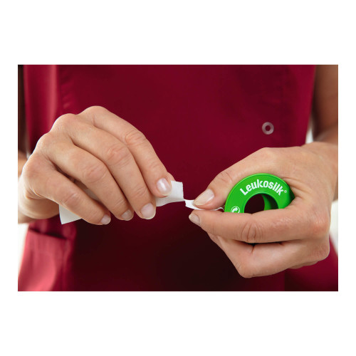 Leukosilk® ist ein sehr hautfreundliches Fixierpflaster, das die Haut weder reizt noch angreift. Ideal für die tägliche, schnelle und zuverlässige Fixierung. Zudem ist es ein strahlenindifferentes, gut beschriftbares, weißes Fixierpflaster. Es ist hautfreundlich und lässt sich rückstandslos entfernen. Leukosilk® ist auch in Längsrichtung leicht von Hand reißbar und verfügt über eine gute Sofort- und Dauerklebkraft.