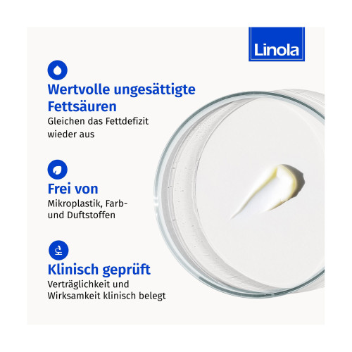 Linola Fett ist eine Creme zur Behandlung von Hauterkrankungen auf trockener Haut.