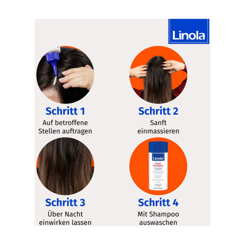 Das Linola Forte Kopfhaut-Tonikum kann täglich angewendet werden. Es sollte abends mithilfe des Applikators scheitelweise aufgetragen und anschließend leicht in die Kopfhaut einmassiert werden.