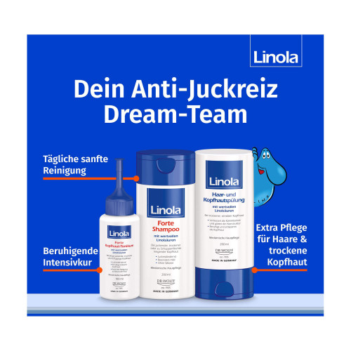 Das Linola Forte Kopfhaut-Tonikum beruhigt die irritierte Haut und fördert ihren Erholungsprozess.