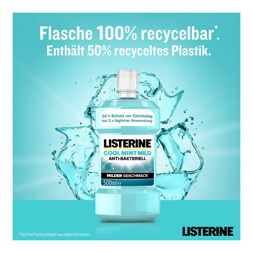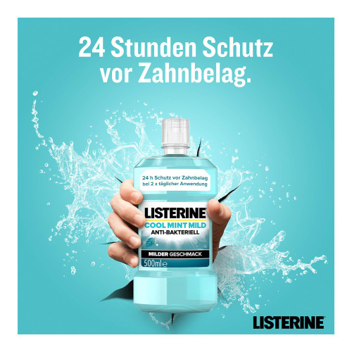 Zweimal am Tag angewendet, verbessert LISTERINE Cool Mint Mild die Mundhygiene – mit ätherischen Ölen und ohne Alkohol. Die Mundspülung ist im Geschmack entschärft und bekämpft wirksam Bakterien auch dort, wo die Zahnbürste nicht hinkommt: zwischen den Zähnen, am Zahnfleisch und auf der Zunge. Zudem verhindert und reduziert die antibakterielle Mundspülung von LISTERINE Zahnbelag, eine Hauptursache für Zahnfleischentzündungen und verleiht ein langanhaltendes Frischegefühl.