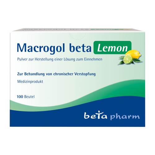 Macrogol beta Lemon (Medizinprodukt) ist ein Abführmittel zur Behandlung von chronischer Verstopfung. Die Anwendung bei Kindern unter 12 Jahren wird nicht empfohlen. Macrogol 3350 macht Ihren Stuhl weicher und ermöglicht eine leichtere Passage, wodurch Sie von der Verstopfung befreit werden.