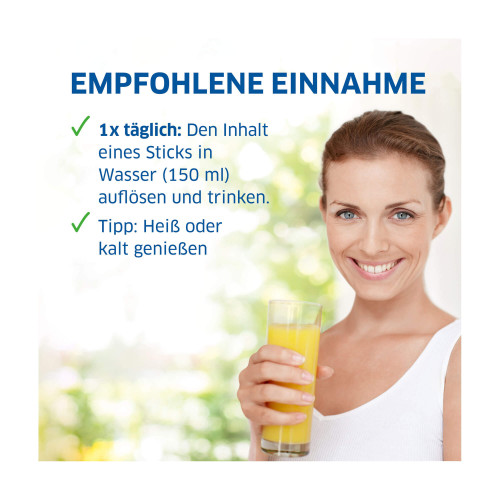 1x täglich den Inhalt eines Sticks in Wasser (150 ml) auflösen und trinken. Heiß oder kalt genießen.