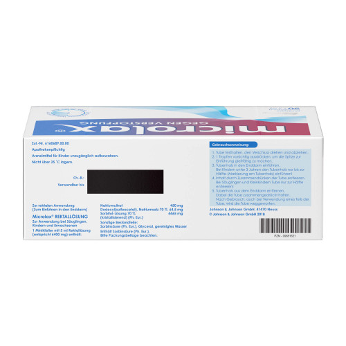 Speziell für Säuglinge und Kinder bis 6 Jahren ist Microlax auch als Microlax Rektallösung mit kurzem Tubenhals (PZN 18713829) erhältlich.