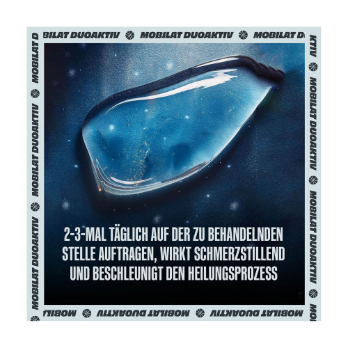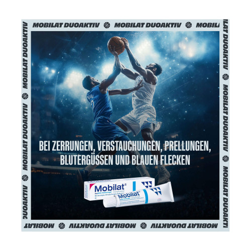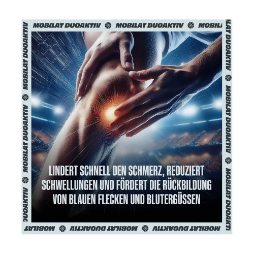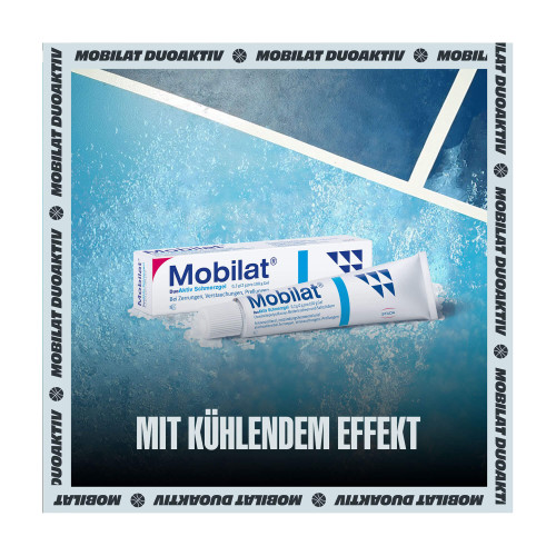 Mobilat DuoAktiv Schmerzgel 0,2 g/2 g pro 100 g Gel. Anwendungsgebiete: Zur unterstützenden lokalen Behandlung von schmerzhaften stumpfen Traumen wie Zerrungen, Verstauchungen oder Prellungen, z.B. bei Sportverletzungen. Bei Beschwerden, die länger als 3 Tage anhalten, sollte ein Arzt aufgesucht werden.