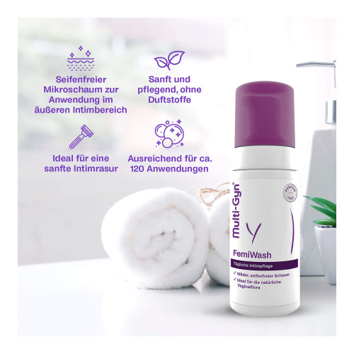 Multi-Gyn FemiWash reinigt und erfrischt den Intimbereich sanft und eignet sich insbesondere zur Anwendung bei sehr empfindlicher Haut. Der Mikroschaum ist ideal für die tägliche Intimpflege und auch hervorragend für eine sanfte Rasur geeignet. - Ideal für eine sanfte Intimrasur