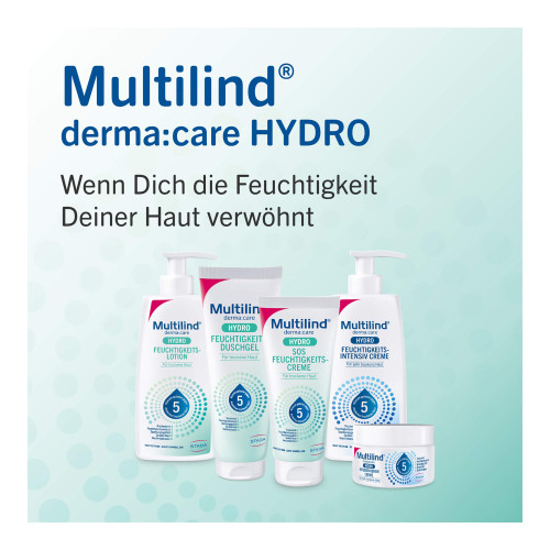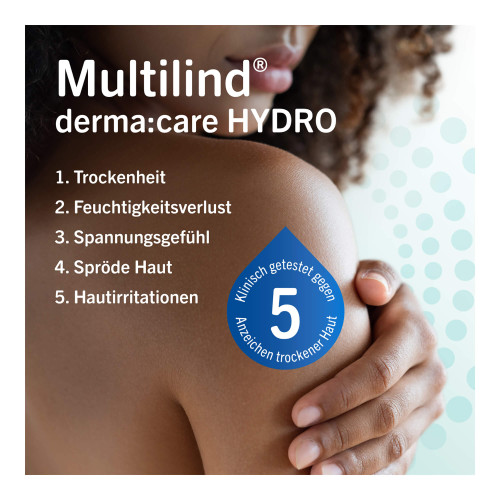 Die Hautpflegeserie Multilind® derma:care HYDRO wurde speziell entwickelt, um die 5 häufigsten Anzeichen trockener Haut zu bekämpfen sowie die Beschaffenheit und das Hautgefühl zu verbessern. Sie dient zur täglichen Pflege trockener und sehr trockener Haut sowie zur Spezialpflege besonders trockener und rauer Hautareale.