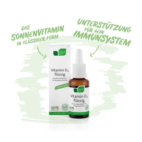 Den Großteil von Vitamin D bilden wir mithilfe des Sonnenlichts selbst in unserer Haut. Für die Eigensynthese ist jedoch ein UV-Index von >3 nötig, dieser wird in den westlichen Breitengraden nur zu wenigen Jahres- und Tageszeiten erreicht. Von Herbst bis Frühling, bei wenig Aufenthalt im Freien, oder der Verwendung von einem hohem LSF im Sommer, kann die Vitamin D Bildung daher reduziert sein. In flüssiger Form mit angenehmem Kokos-Geschmack ist dieses Produkt es besonders einfach in der Anwendung und eignet sich für die ganze Familie.