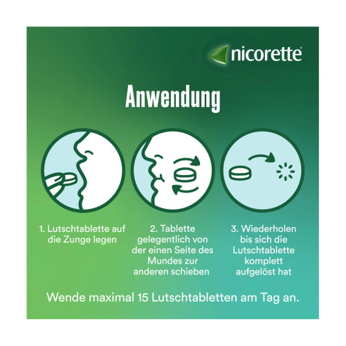 - Es wird Ihnen empfohlen, mit einem Arzt oder Apotheker zu sprechen, wenn Sie nach 9 Monaten immer noch Schwierigkeiten haben, ohne Unterstützung durch Nicorette Lutschtabletten das Rauchen aufzugeben.