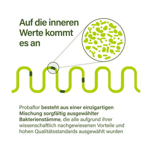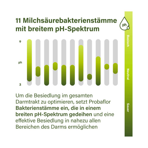 Nupure probaflor enthält 11 verschiedene Stämme Milchsäurebakterien und pro Kapsel 20 Mrd. lebende Bakterienkulturen.