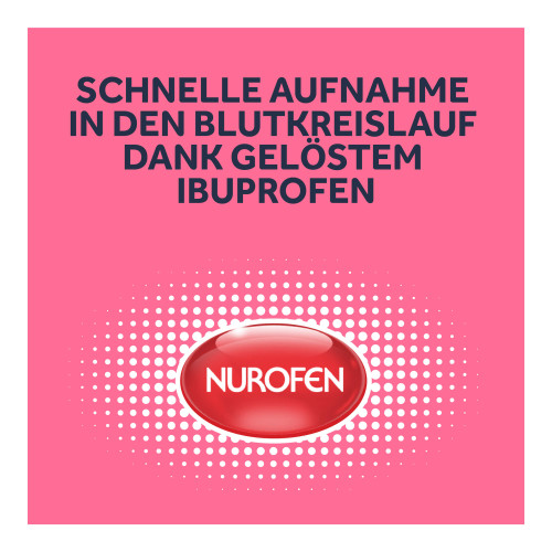 Nurofen® Immedia 200 mg Weichkapseln. Wirkstoff: Ibuprofen. Anwendungsgebiete: Kurzzeitige symptomatische Behandlung von leichten bis mäßig starken Schmerzen, wie Kopf-, Zahn- und Regelschmerzen; Fieber und Schmerzen im Zusammenhang mit Erkältung. Warnhinweise: Enthält Sorbitol und Ponceau 4R (E124).