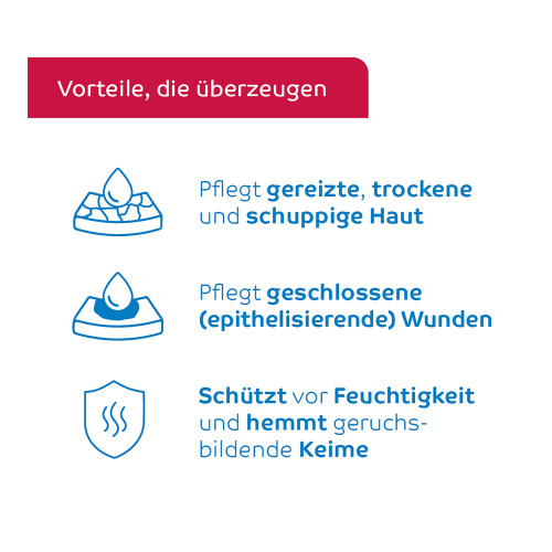 - Pflegt geschlossene (epithelisierende) Wunden.