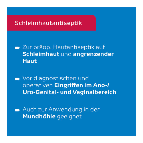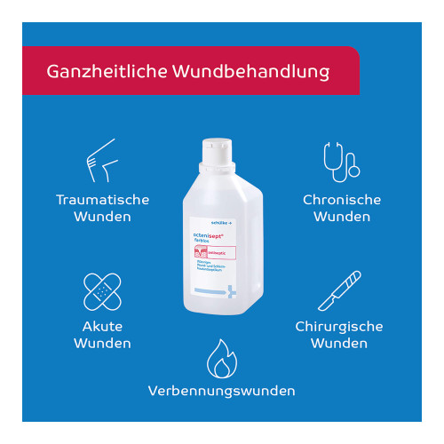 octenisept farblos ist ein Antiseptikum zur wiederholten, zeitlich begrenzten antiseptischen Behandlung von Schleimhaut und angrenzender Haut vor diagnostischen und operativen Maßnahmen - im Ano-Genitalbereich von Vagina, Vulva, Glans penis, auch vor Katheterisierung der Harnblase - in der Mundhöle. Zur zeitlich begrenzten unterstützenden Therapie bei Pilzerkrankungen der Haut zwischen den Zehen sowie zur unterstützenden antiseptischen Wundbehandlung.
