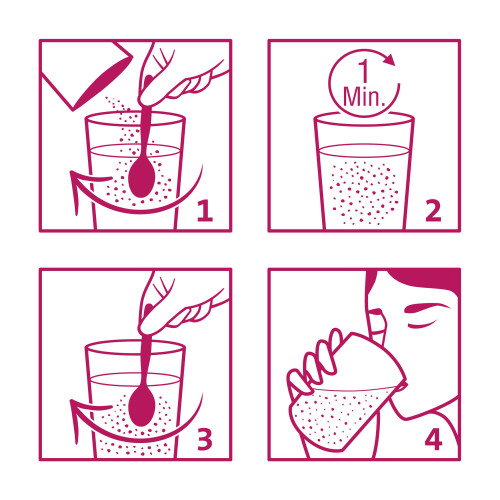 1-2 x täglich 1 Beutel OMNi-BiOTiC® METAtox (= 3 g) in ca.1/8 l Wasser einrühren, mindestens 1 Minute Aktivierungszeit abwarten, nochmals umrühren und dann trinken.