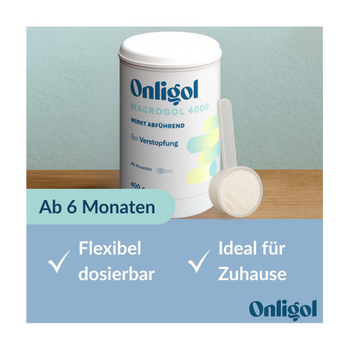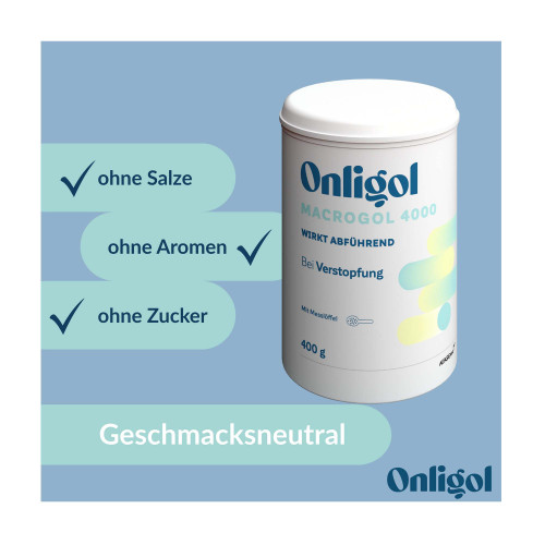Onligol ist ein Abführmittel als Pulver für eine Trinklösung auf Basis von Macrogol 4000. Es enthält keine Hilfsstoffe, Aromen oder Zucker. Es kann in einem beliebigen Getränk aufgelöst werden: z.B. Tee, Kräutertee, Milch, Brühe oder Fruchtsaft und verändert den Geschmack nicht.