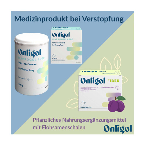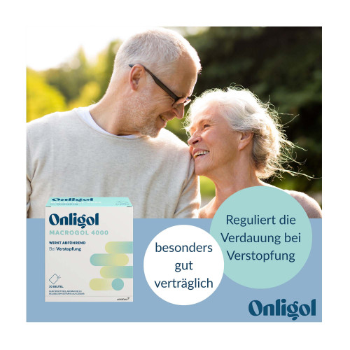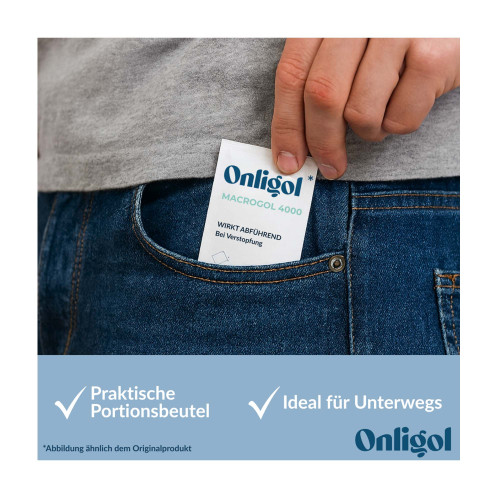 Onligol ist ein Abführmittel als Pulver für eine Trinklösung auf Basis von Macrogol 4000. Es enthält keine Hilfsstoffe, Aromen oder Zucker. Es kann in einem beliebigen Getränk aufgelöst werden: z.B. Tee, Kräutertee, Milch, Brühe oder Fruchtsaft und verändert den Geschmack nicht.