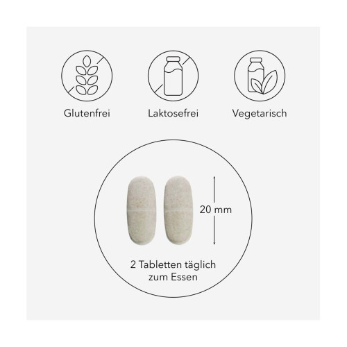 Zur regelmäßigen Nahrungsergänzung täglich 2 Tabletten zum Essen mit etwas Flüssigkeit einnehmen.