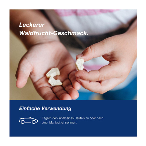 Mit Calcium und Vitamin D, die für das normale kindliche Wachstum und die Knochenentwicklung benötigt werden sowie Jod, das ebenso zum normalen kindlichen Wachstum beiträgt.