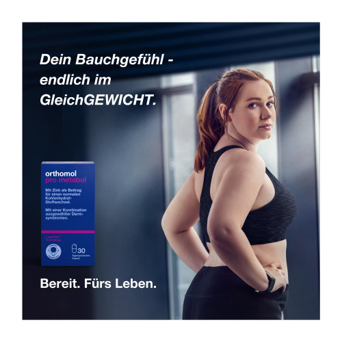 Orthomol Pro metabol ist ein Nahrungsergänzungsmittel für die gezielte Unterstützung des Darms, u.a. im Rahmen des Gewichtsmanagements.