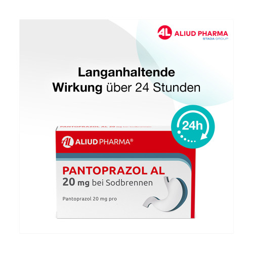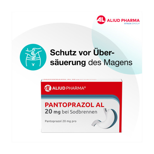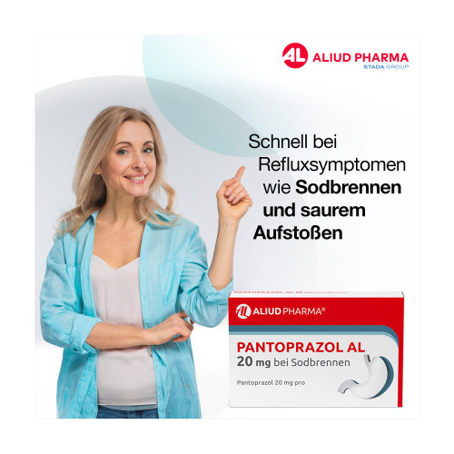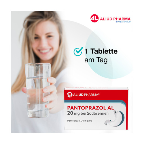 Pantoprazol AL 20 mg bei Sodbrennen. Wirkstoff: Pantoprazol. Anwendungsgebiete: Zur kurzzeitigen Behandlung von Reflux-Symptomen (z. B. Sodbrennen, saures Aufstoßen) bei Erwachsenen. Reflux ist der Rückfluss von Magensäure in die Speiseröhre, die sich schmerzhaft entzünden kann. Dies kann Symptome verursachen wie ein schmerzhaftes, zur Kehle aufsteigendes Brennen im Brustbereich (Sodbrennen) sowie einen sauren Geschmack im Mund (Säurerückfluss). Warnhinweise: Enthält Maltitol und Natrium.