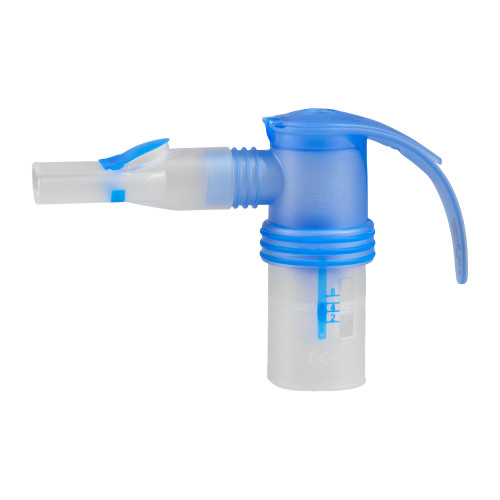 4. Füllen Sie die erforderliche Menge der Inhalationslösung von oben in den Vernebler ein. Beachten Sie das minimale und maximale Füllvolumen. Enthält der Vernebler zu wenig oder zu viel Flüssigkeit, wird die Vernebelung und damit die Therapie beeinträchtigt.