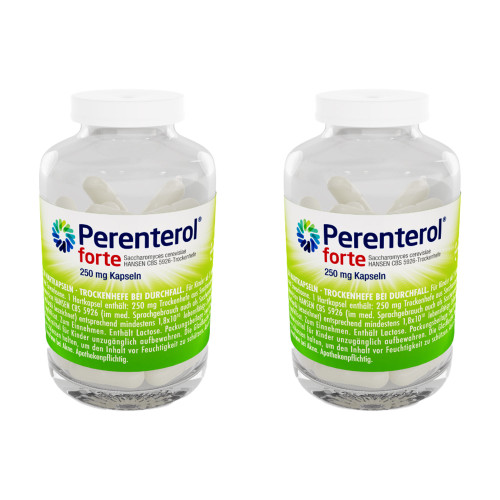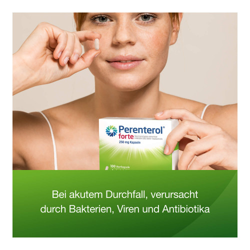 Perenterol forte 250 mg Kapseln. Wirkstoff: Trockenhefe aus Saccharomyces cerevisiae HANSEN CBS 5926 (Synonym: Saccharomyces boulardii). Anwendungsgebiete: Zur symptomatischen Behandlung akuter Diarrhöen. Zur Vorbeugung und symptomatischen Behandlung der Beschwerden von Reisedurchfällen sowie Durchfällen unter Sondenernährung. Zur begleitenden Behandlung bei länger bestehenden Formen der Akne. Für Erwachsene und Kinder ab 2 Jahren. Warnhinweis: Enthält Lactose.