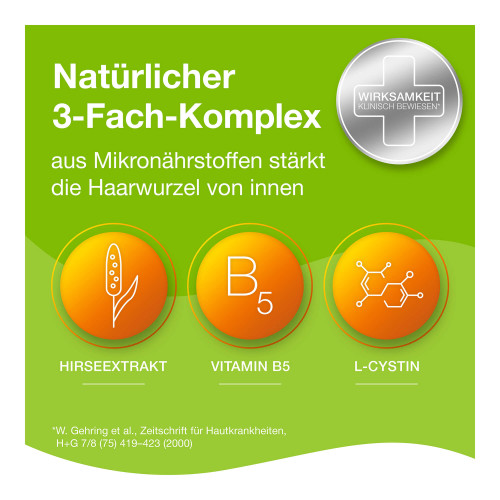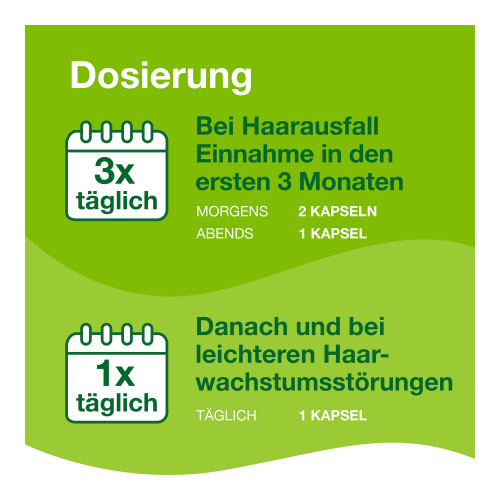 Bei Haarausfall: Morgens 2 Kapseln und abens 1 Kapsel täglich.