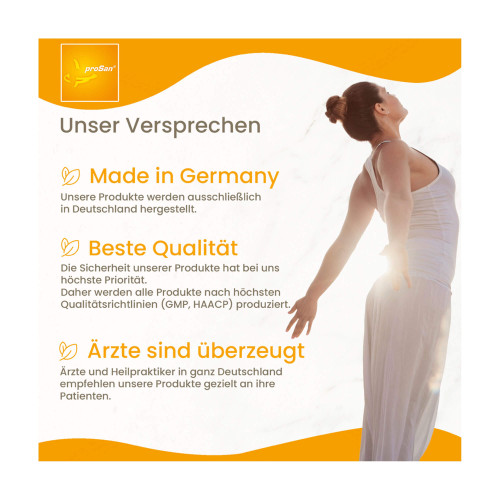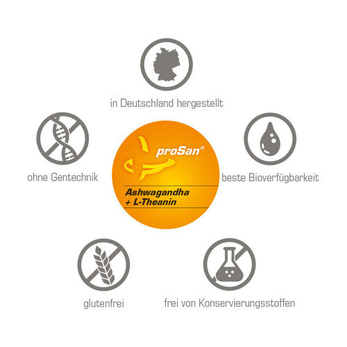proSan Ashwagandha + L-Theanin ist frei von künstlichen Farbstoffen, Milcheiweiß, Gluten und Lactose.
