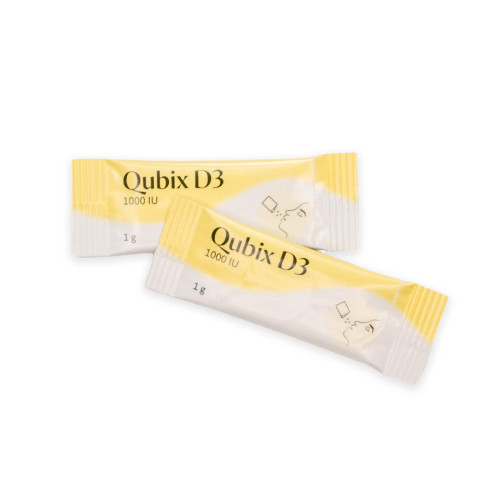 Die QUBIX D3 Beutel sind so konzipiert, dass sie einfach verzehrt werden können, entweder direkt aus dem Beutel oder das Pulver in einem Glas Wasser auflösen und trinken.