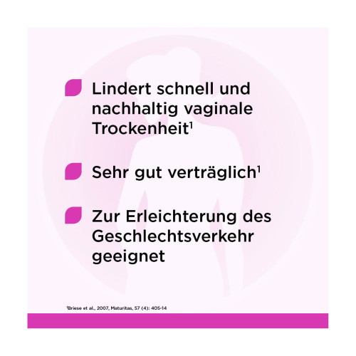 Die Creme kann bei Scheidentrockenheit vor dem Geschlechtsverkehr angewandt werden.