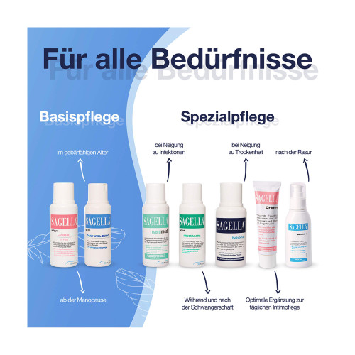 Brennen und Juckreiz können die Folge sein – Sagella® HydraSerum wirkt der Trockenheit entgegen und spendet die nötige Feuchtigkeit bei der täglichen Pflege.