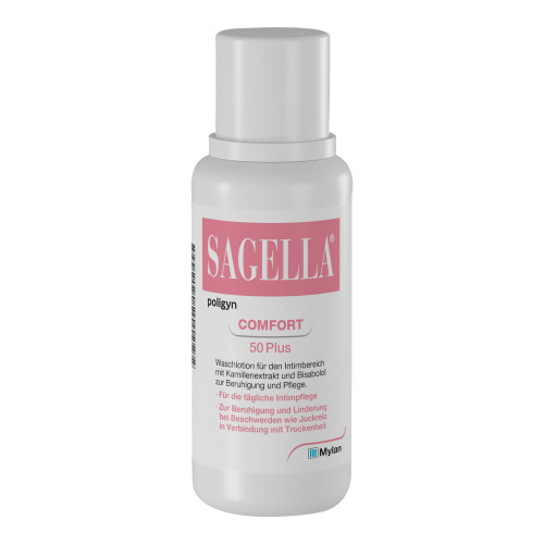 Die Formel von Sagella poligyn – Comfort 50 Plus ist genau auf die veränderten Bedürfnisse der Frau ab Beginn der Menopause angepasst. Mit einem pH-Wert von 6 bis 7 sorgt die Waschlotion für Schutz und Balance der vaginalen Flora.