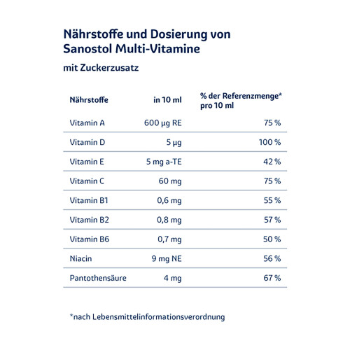 | Nährstoffe | in 10 ml | % der Referenzmenge* pro 10 ml |