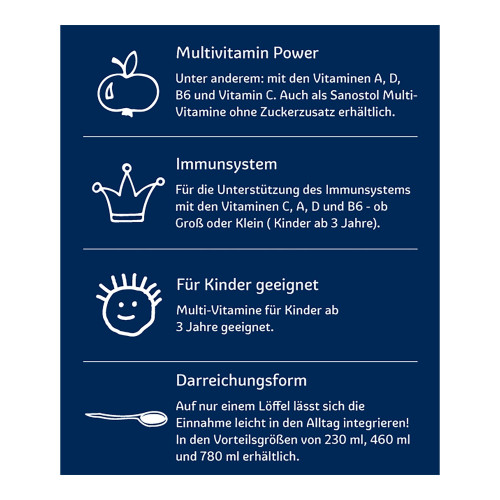 Mit den Vitaminen C, A, D und B6 zur Unterstützung der normalen Funktion der Abwehrkräfte.