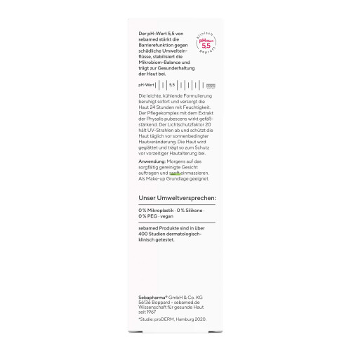 sebamed ANTI-RÖTUNGEN Leichte Tagespflege hilft, bei regelmäßiger Anwendung, der Entstehung neuer Rötungen vorzubeugen und bestehende zu mildern. Die leichte, kühlende Formulierung beruhigt sofort und versorgt die Haut 24 Stunden mit Feuchtigkeit. Der Pflegekomplex mit dem Extrakt der Physalis pubescens wirkt gefäßstärkend. Der Lichtschutzfaktor 20 hält UV-Strahlen ab und schützt die Haut täglich vor sonnenbedingter Hautveränderung. Die Haut wird geglättet und trägt so zum Schutz vorzeitiger Hautalterung bei. Parfümfreie, grüne Pflegeformel bei Rötungen.