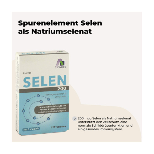 Nahrungsergänzungsmittel mit 200 mcg Selen als Natriumselenat.