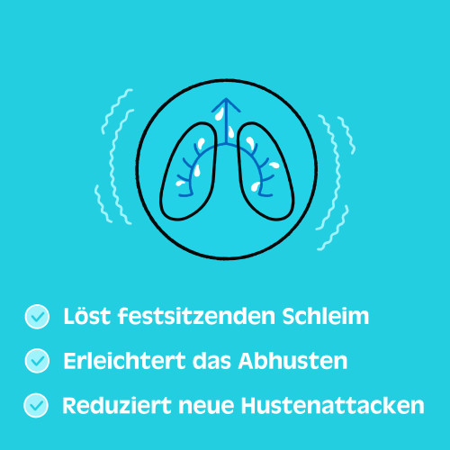 Der Wirkstoff löst festsitzenden Schleim in den Atemwegen. Der zähe Schleim wird dünnflüssiger und die Haftung an den Schleimhäuten der Bronchien nimmt ab. Dadurch geht die Verschleimung zurück und das Abhusten wird erleichtert.