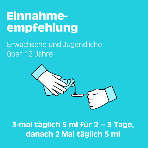 | Jugendliche ab 12 Jahren und Erwachsene | 5 ml | 3-mal täglich (für die ersten 2-3 Tage) | unabhängig von der Mahlzeit |