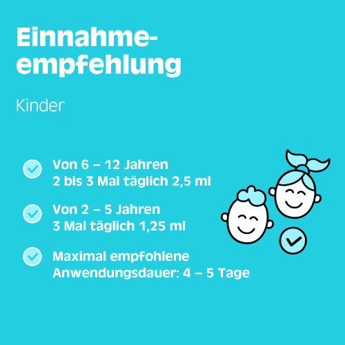 3-mal täglich 5 ml für 2-3 Tage, danach 2-mal täglich 5 ml.