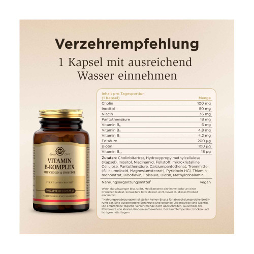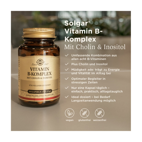 - kombiniert alle acht B-Vitamine mit Cholin und Inositol