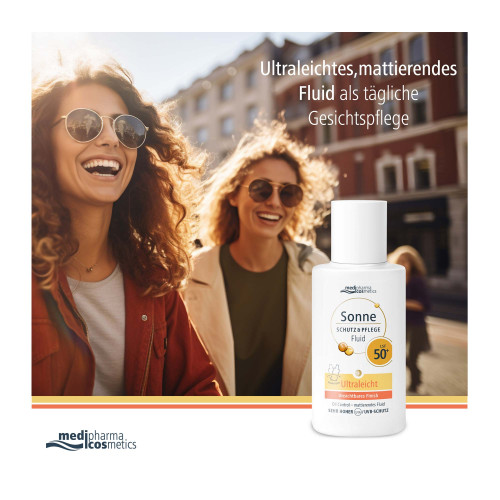 Egal ob für den Alltag in der Stadt oder den Urlaub am Strand – das Sonne Schutz&Pflege Fluid von medipharma cosmetics ist der perfekte Begleiter, um Ihre Haut effektiv zu schützen und gleichzeitig zu pflegen.