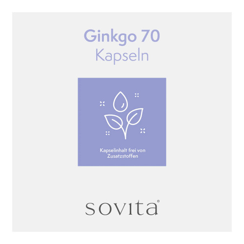 Die sovita Ginkgo 70 Kapseln enthalten einen hochwertigen Ginkgo biloba Extrakt mit einem Gehalt von 70 mg Ginkgoblatt-Trockenextrakt (50:1). Dieser pflanzliche Extrakt wird seit Jahrhunderten in der traditionellen chinesischen Medizin geschätzt. Mit den Ginkgo Kapseln erhalten Sie ein hochwertiges Nahrungsergänzungsmittel.
