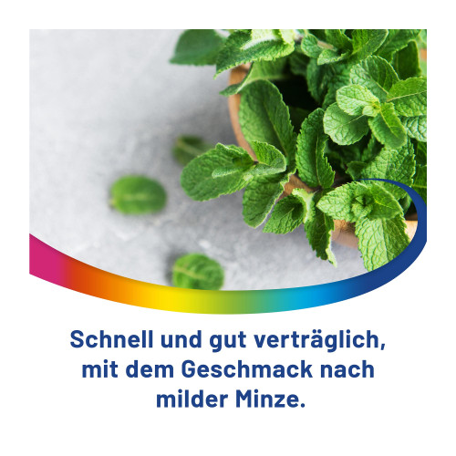 - Die sonstigen Bestandteile sind: Mannitol, Maisstärke, Magnesiumstearat, Saccharin-Natrium, Pfefferminz-Aroma (enthält Menthol), Bananen-Aroma.