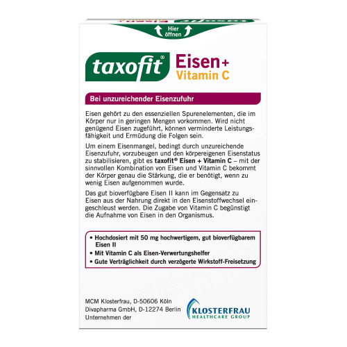 Stoff- oder Indikationsgruppe: taxofit® Eisen+ Vitamin C ist ein Eisenpräparat.