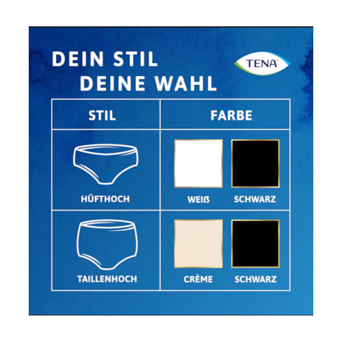 Elegante, diskrete Einwegunterwäsche für Frauen. TENA Silhouette Plus taillenhohe Slips bieten umfassenden Schutz bei mittlerer bis schwerer Blasenschwäche. Ideal für Frauen nach der Entbindung.