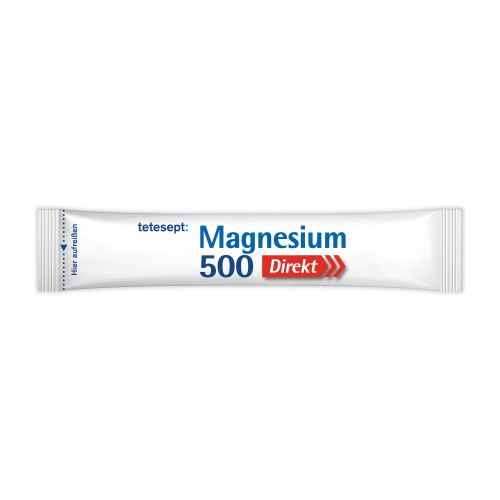 Magnesium ist ein lebenswichtiger Nährstoff, der jedoch nicht vom menschlichen Körper gebildet wird und daher über die Nahrung zugeführt werden muss. In Phasen besonderer Aktivität, Anstrengung oder Belastung kann ein erhöhter Bedarf an Magnesium entstehen, z. B. in der Freizeit, beim Sport oder bei den täglichen Aufgaben in Haushalt und Garten. tetesept Magnesium 500 Direkt Sticks enthalten hochdosiertes Magnesium als Micro-Granulat, das besonders leicht einzunehmen ist. So ist es im Körper schnell verfügbar und effektiv. Besonders praktisch für unterwegs und bei akutem Bedarf.