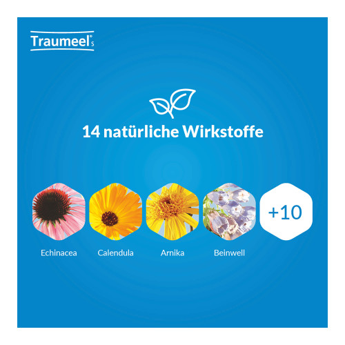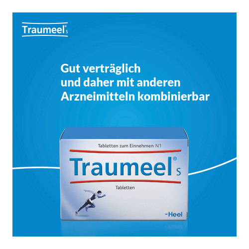 Traumeel S Tabletten. Anwendungsgebiet: Registriertes homöopathisches Arzneimittel, daher ohne Angabe einer therapeutischen Indikation. Warnhinweis: Enthält Lactose. 1 Tablette = 0,025 BE. Reg.-Nr.: 2522108.00.00.