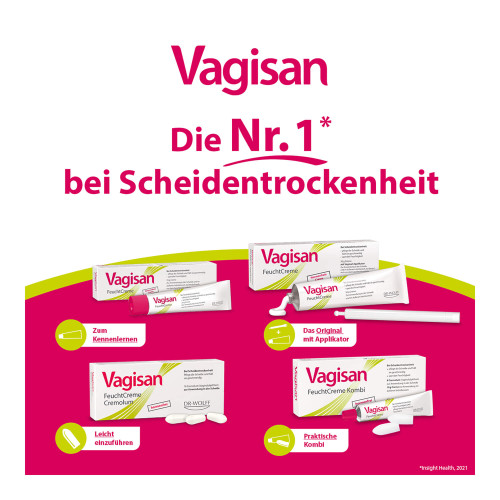 - Vagisan FeuchtCreme eignet sich zur Anwendung in der Scheide (Anwendung mit Applikator) und im äußeren Intimbereich.